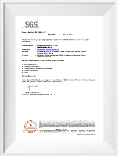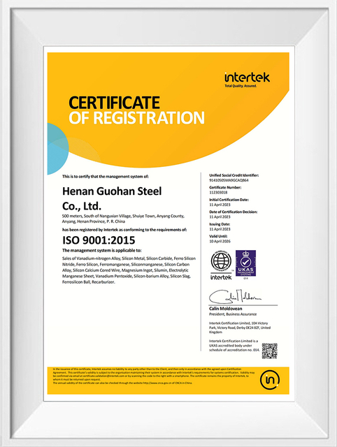 Henan Guohan Steel Co., Ltd. is a leading manufacturer of vanadium-based alloys, specializing in Ferrovanadium (FeV) and Vanadium Nitride (VN). Our advanced production facilities and strict metallurgical processes ensure stable chemical composition, particle size, and superior performance for all vanadium products. In addition to alloy production, we are an international trader of ferrosilicon, silicon metal, manganese metal, and silicon carbide, providing high-quality industrial materials to steel mills, foundries, and other industrial users worldwide.